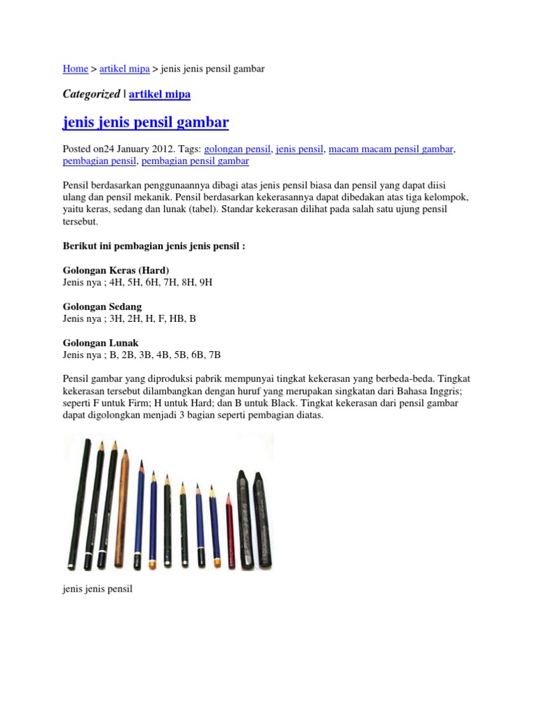 Jenis Jenis Pensil Berdasarkan Tingkat Kekerasannya Gamtek 40